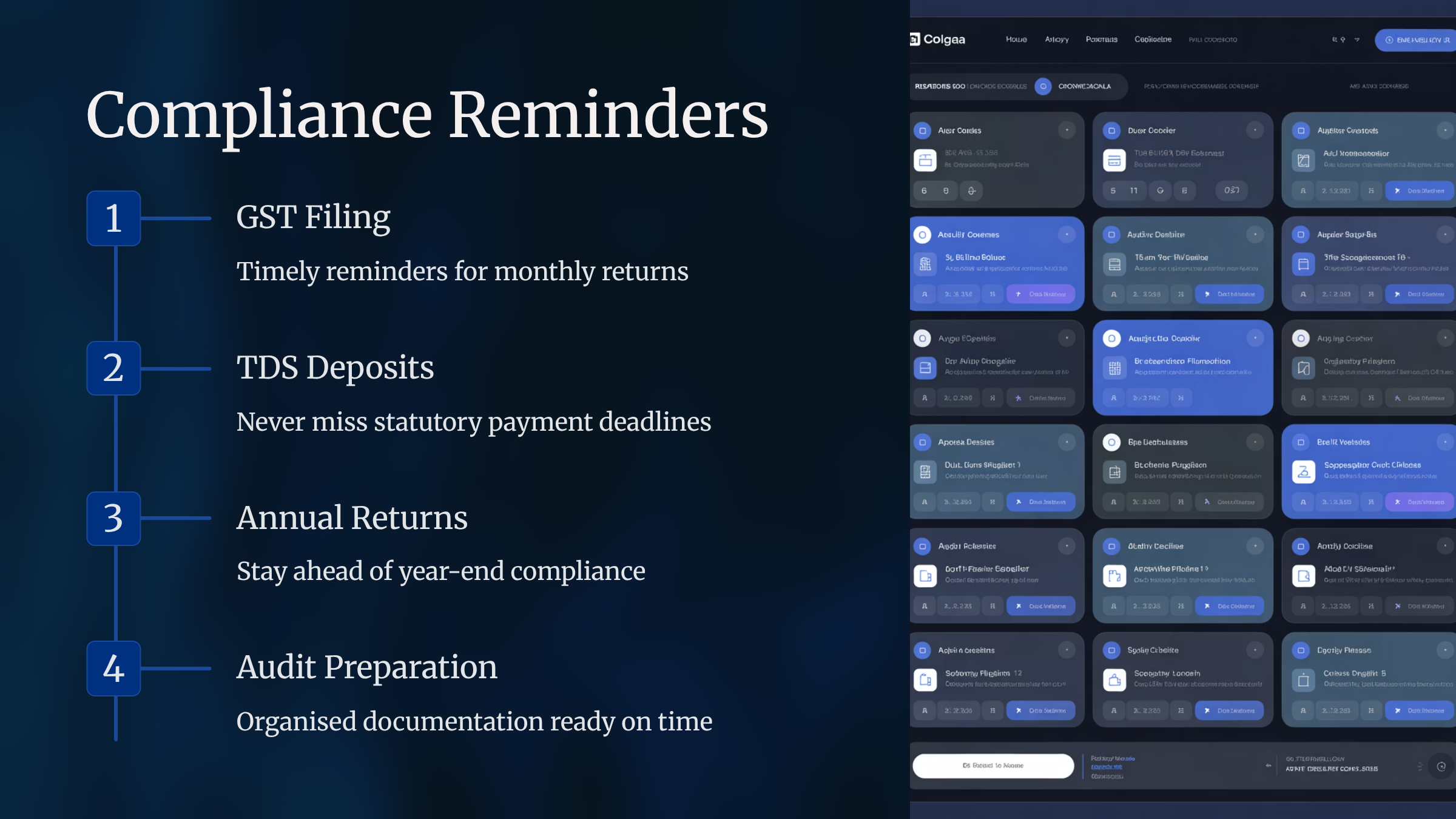Missing a statutory deadline results in penalties, interest, and legal complications. Filing365 ensures you stay 100% compliant. We track all important due dates for: